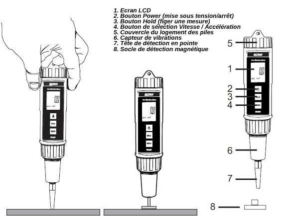 Le testeur de précision VB400 est conçu pour effectuer rapidement et simplement des mesures de vitesse et d'accélération sur des machines industrielles. Ecran LCD très lisible. Mesure par appui sur la surface via une pointe de détection amovible ou via une applique magnétique.